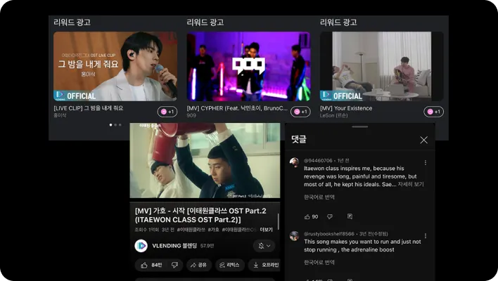 58만 구독자를 보유한 VLENDING 유튜브 채널에서 MV 등록