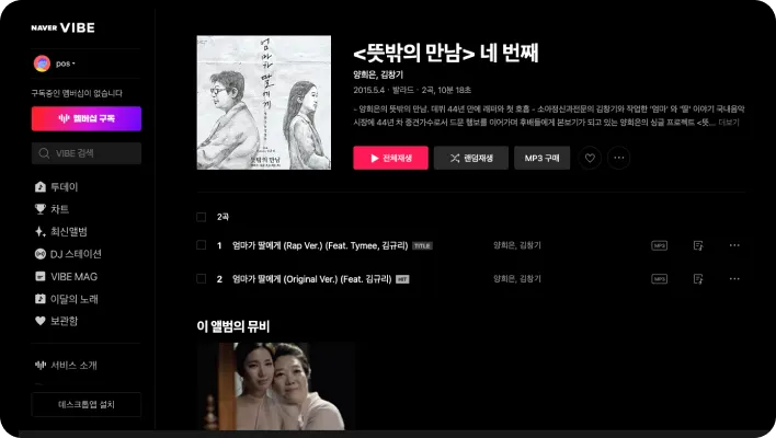 1주간 ‘뜻밖의 만남’ 리스트에 음원 노출